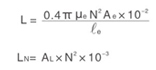 The inductance of a wound core at a given number of turns is calculated using the following formula![]() | L=0.4πμeN2Ae*10-2/le Ln=Al&N<2>*10-3L:電感量(μH)1H=103mH=106μH=109nH inductance(μH) Al:額定電感量(nH/N2)nominal Inductance(nH/N2) μe:有效磁芯截面積 effective cores section area(cm2) Ae:有效磁路長度 mean magnetic path length(cm) N:線圈數(shù): number of turns Ln:在N圈時(shí)的電感量(μH)Inductance at N turns(μH) |